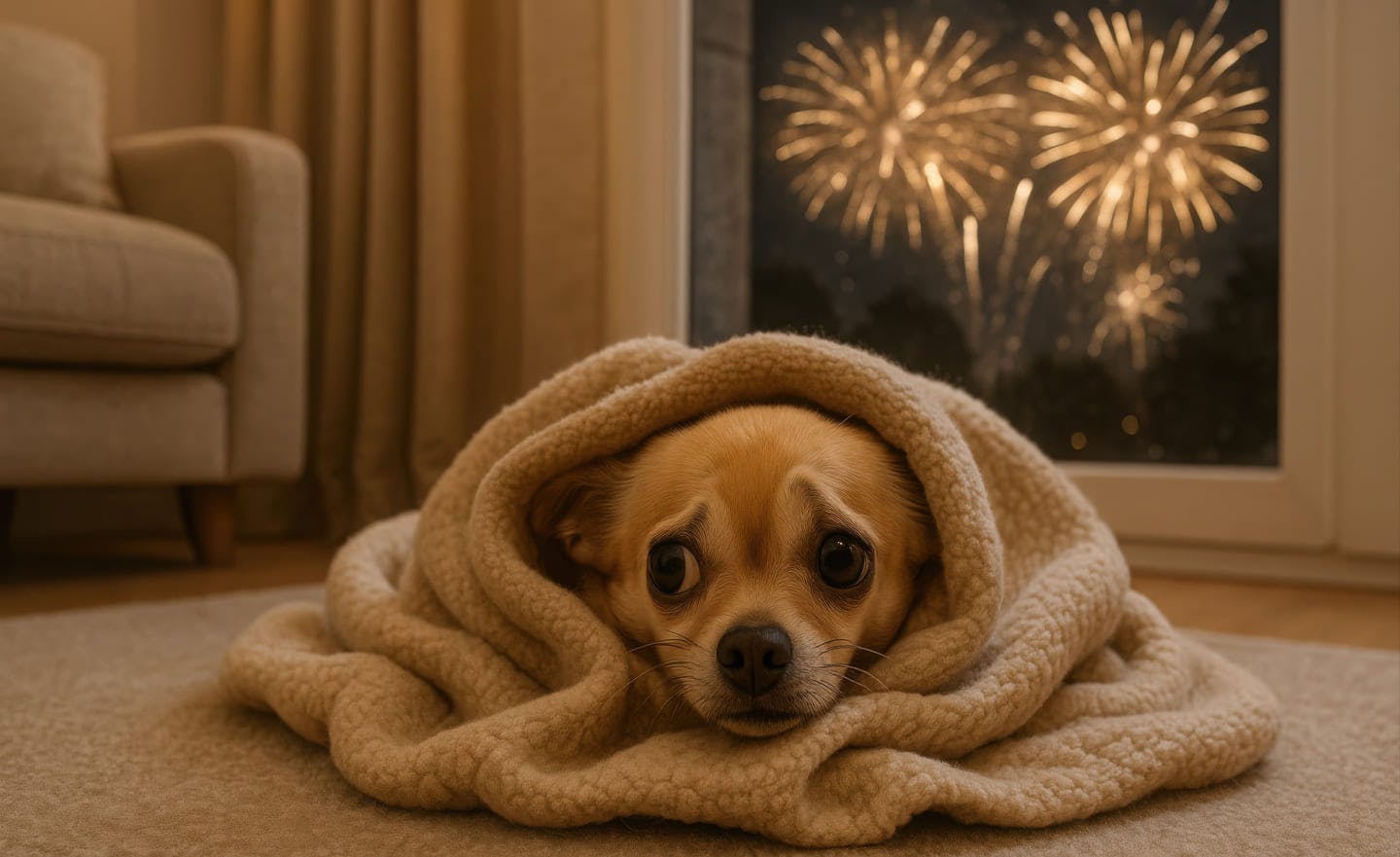 Silvester mit Hund: So beruhigst du deinen Hund bei Feuerwerk